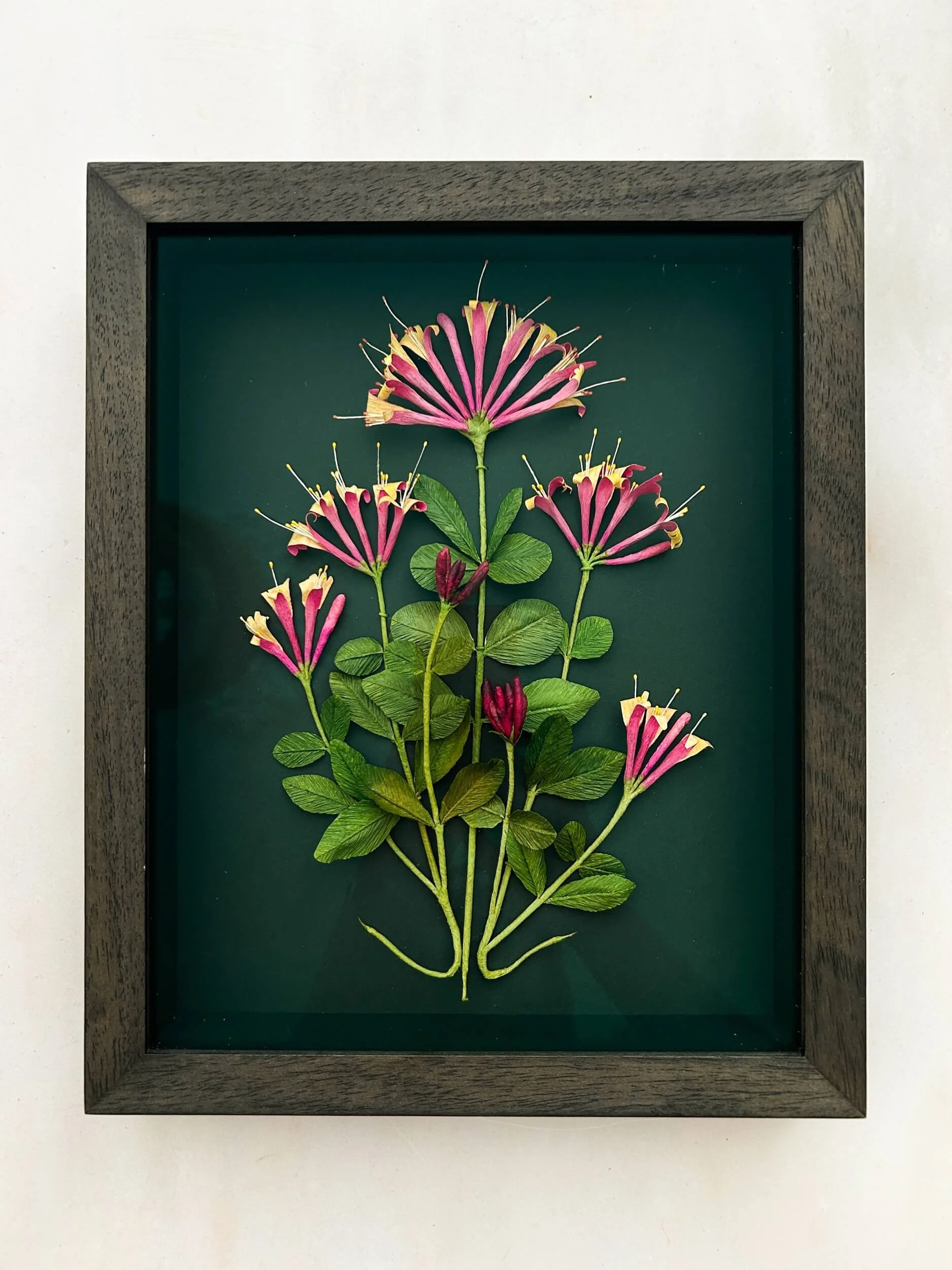 Framed Paper Botanical ArtworkPlease find below a selection of framed, bespoke paper botanical pieces that are available for purchase and ready to hang.Each piece is meticulously crafted from paper and wire and hand painted. I’m able to take payment in instalments, please email me to enquire. 'Sweet Counsel' Framed Paper Honeysuckle £595.00 'Gathered Adoration' Framed Paper Anemone Artwork £2,350.00 'A Dreamy Feeling' Framed Paper Poppy £595.00 Each Petal Shone - Framed Paper Cowslip (63 x 48cm) £2,250.00 'Scarlet Whispers' Framed Paper Geranium Artwork £595.00 Arise - Framed Paper Nasturtiums (83 x 63cm) £3,950.00 'Defiant Cluster' Paper Geranium Artwork £595.00 'You Belong Here' Framed Paper Geranium Artwork £1,200.00